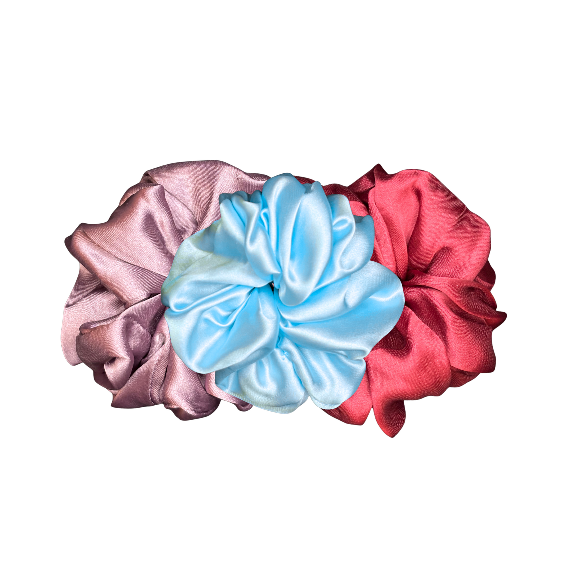 Add a touch of elegance and fun to your hairstyle with this set of three silk scrunchies. Soft and smooth, they gently hold your hair without causing damage or creases. Perfect for dressing up or keeping your hair comfy during a busy day, these scrunchies bring a playful twist to any look. Embrace the silky feel and vibrant charm of Twilight Mist every time you style!